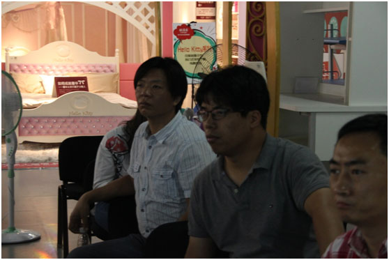 (上圖是義烏市雷群貿(mào)易有限公司總經(jīng)理趙群生在認(rèn)真聽取后,對(duì)酷漫居的轉(zhuǎn)型史提問)