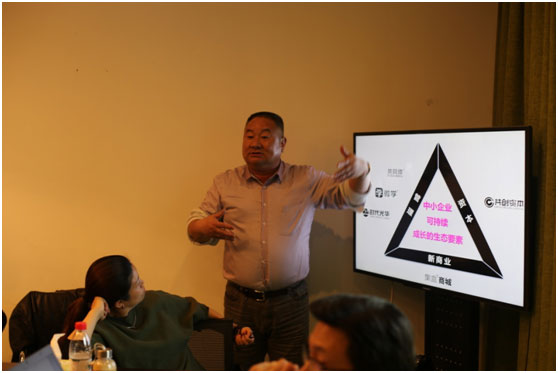 會議一開始,共創(chuàng)會會長方永飛直奔主題,拋出第一個思考:每一個時代都有每一個時代的紅利,上一個商業(yè)時代的紅利,免費低成本的流量,這兩個的紅利都在逐漸喪失中,那么下一個商業(yè)時代的紅利究竟是什么?