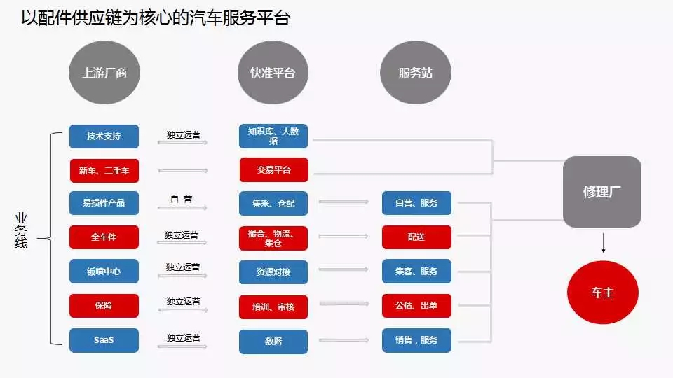 很多修理廠遇到很多問題,站在他們的角度,第一需求是如何把門店搞起來,第二是技術(shù)支持,第三,門店運(yùn)營。只要修理廠很快準(zhǔn)車服合作,快準(zhǔn)車服會幫助合作商想辦法做大多賺錢。整個汽車市場實(shí)際上繞不開修理廠這一環(huán),很多配件銷售成功也離不開修理廠。